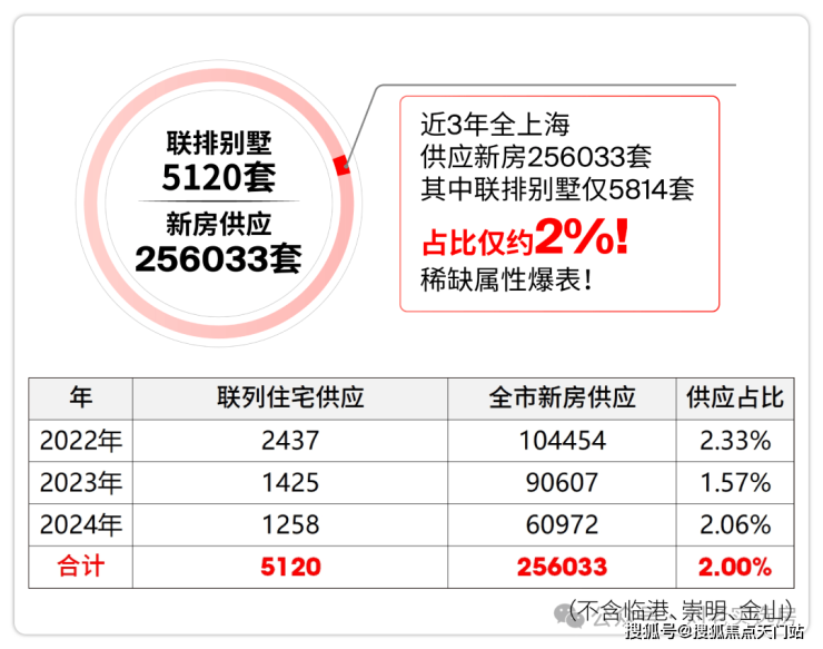 在2022年上海还有2437套通勤时间可控的联排产品入市(排除崇明、金山、临港等极端偏远地区,下同),2023年锐减至1425套,2024年则只有1258套,占比新房供应总池子仅约2%,百里挑二的改善机遇!