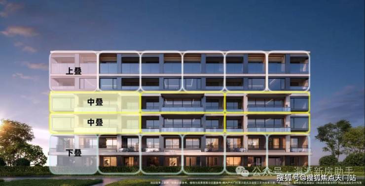上叠露台可以做空中花园, 下叠庭院实现“推门见绿”, 中叠(约123㎡户型)配独立电梯厅、约13.4m南向面宽 、约6m横厅、南北双270°转角飘窗及花池赠送,体感接近整层大平层,实得率接近“满格”。