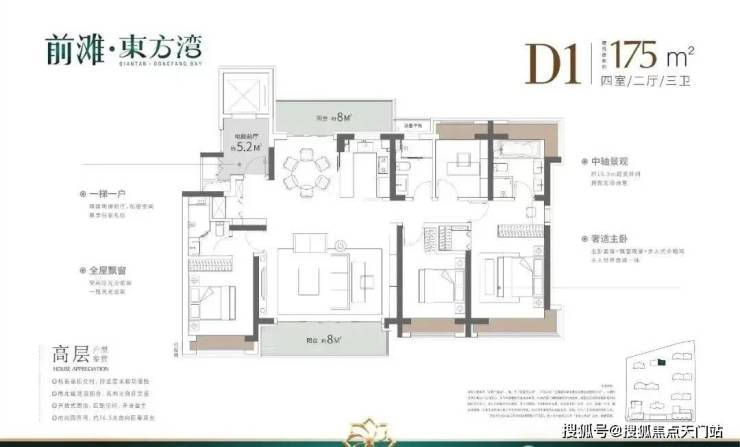 这3个户型三开间朝南、室内 “ 朝南2飘窗+1阳台 ” 、再加上 “2卫”、“动静分离” 的设计,不管是采光、视野、通风、私密性,还是实用性都十分出色。