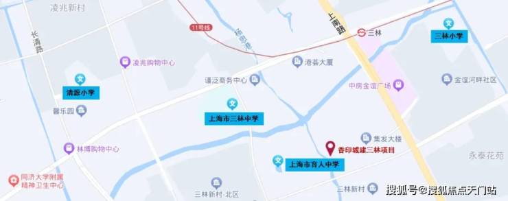轨道交通方面: 项目与11号线三林站直线距离仅约350米,步行可达,进站后1站即达前滩,2站即达徐汇滨江。