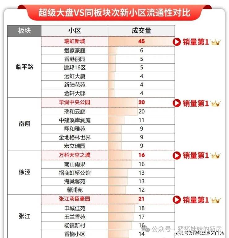 从过往表现来看,但凡能定鼎区域大盘的项目,比如瑞虹新城、汤臣豪园、华润中央公园、万科天空之城,首先销量即流通性区域第一!