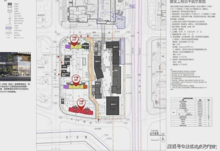 规划3栋总高17-29层住宅,商业部分有2栋总高30F的酒店、23F的综合楼、以及2栋3F的商业;住宅和商业部分通过公共通道分隔;住宅部分人车分流,无地面车位。车行入口在西侧祁健路上。