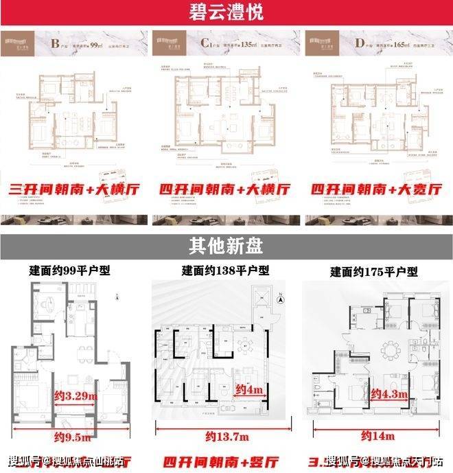 相较于市面上相似面积段,甚至更大面积段的优质户型,碧云澧悦在面宽设计上都更加出彩!