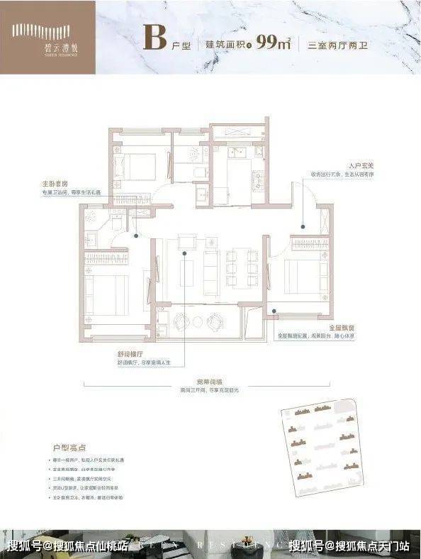 2)建面约99㎡户型,“飞机户型”+大横厅!