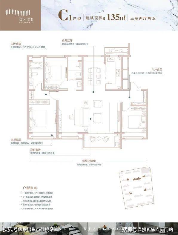 3)建面约135㎡户型,大横厅+独立餐厅!