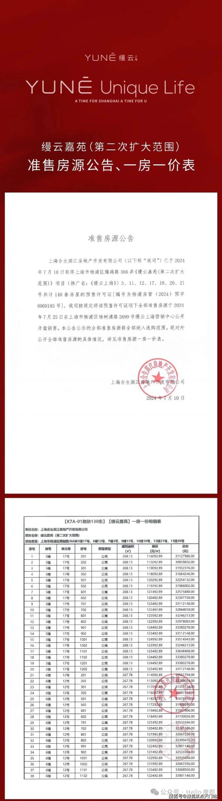 【本批一房一价表】
