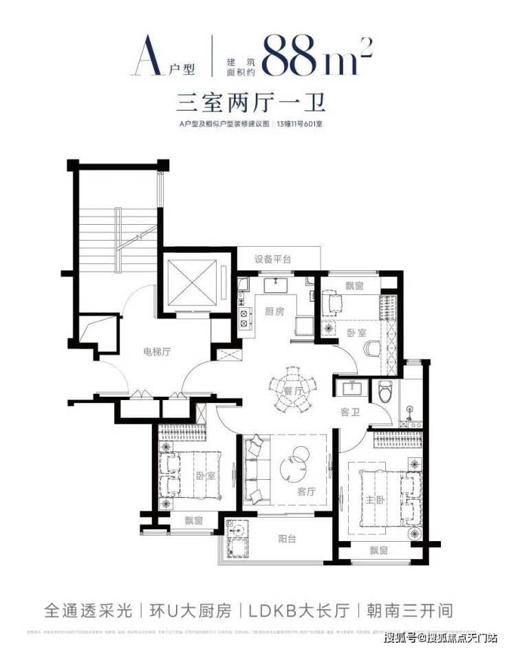 南向约13米超级面宽:远超同面积段产品约9-10米的常规水平,实现3.5开间朝南,阳光渗透率达90%以上。