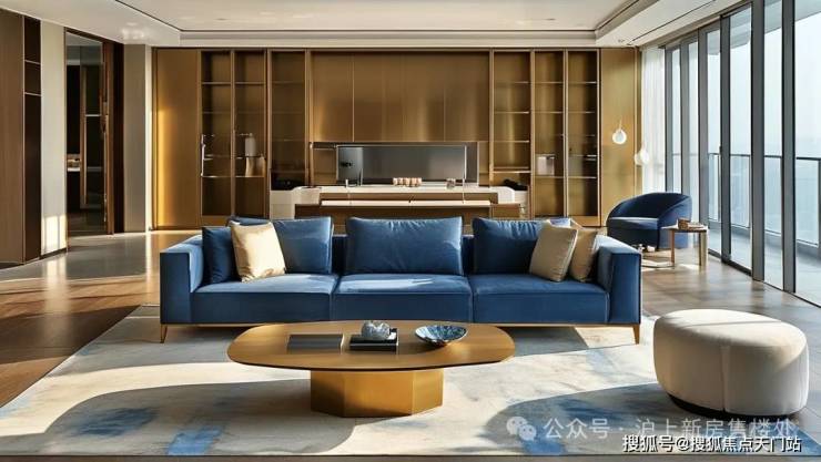 120㎡三房户型:创新性采用“双洄游动线”设计,玄关与客厅形成气流回旋通道,让家庭成员轨迹如溪流般自然交汇又独立奔涌。约6米宽厅落地窗引入时间光影,晨光在岩板餐桌铺陈金色早餐,暮色于沙发区沉淀为蓝色谧境。