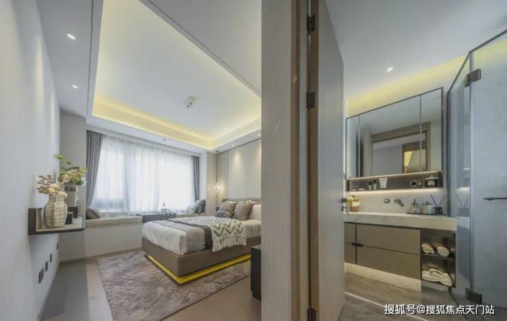 主卧套房设计,自带270°转角L型飘窗,实现无界视野,躺在床上也能享受环幕赏景。