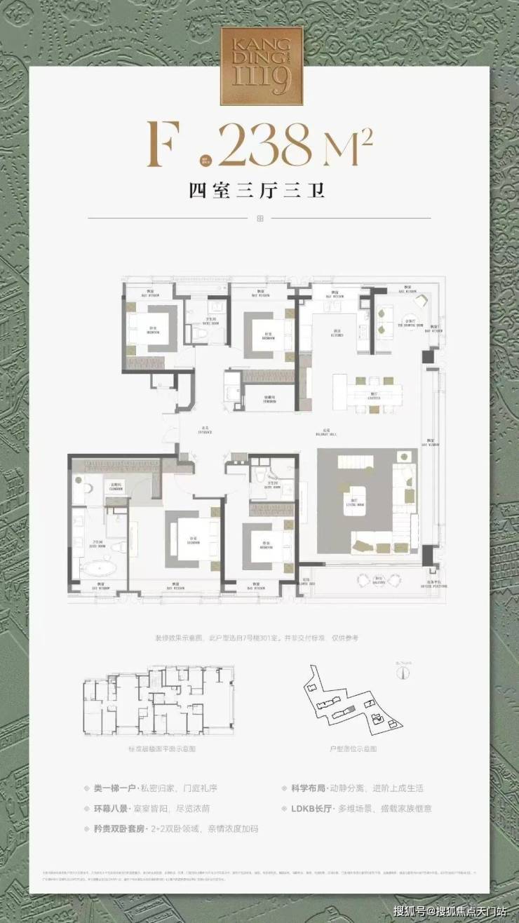 最新信息:康定壹拾玖即将清盘,目前还有少量房源,建面约177-238㎡3-4房,均价17.18万/㎡,可直接落位!