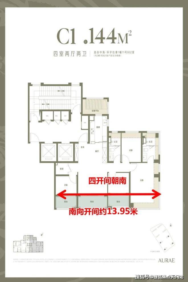 2. 建面约144㎡四房:市区景观与实得率双冠王改善户型