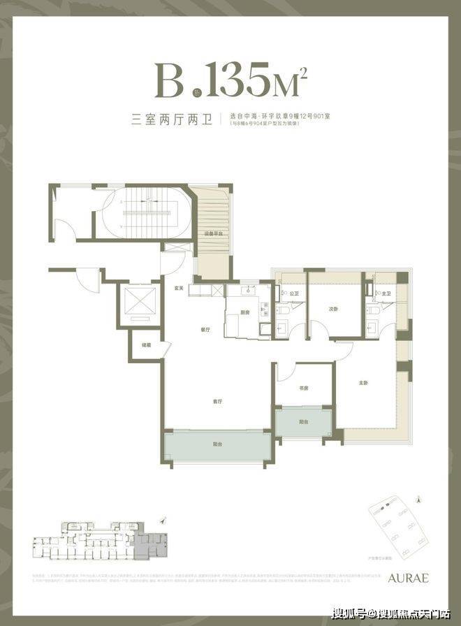 3. 建面约135㎡三房:板块罕有双唯一性大三房