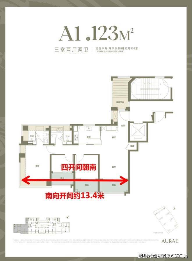 1. 建面约123㎡三房:内环旁最高性价比上车户型