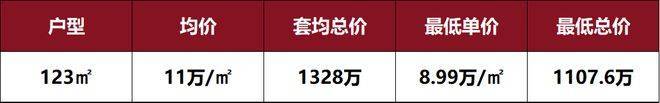 据了解,本次加推约123㎡户型预计均价仅约11万/㎡,中间套更是低至约10.5万/㎡,是绝对的内环旁门槛级价格!