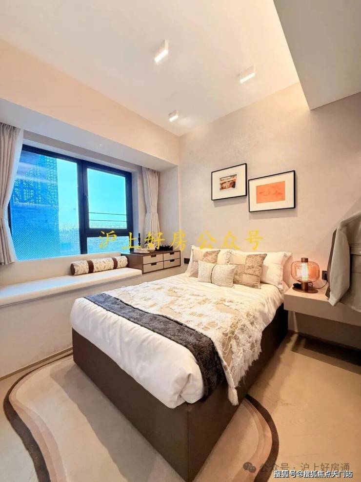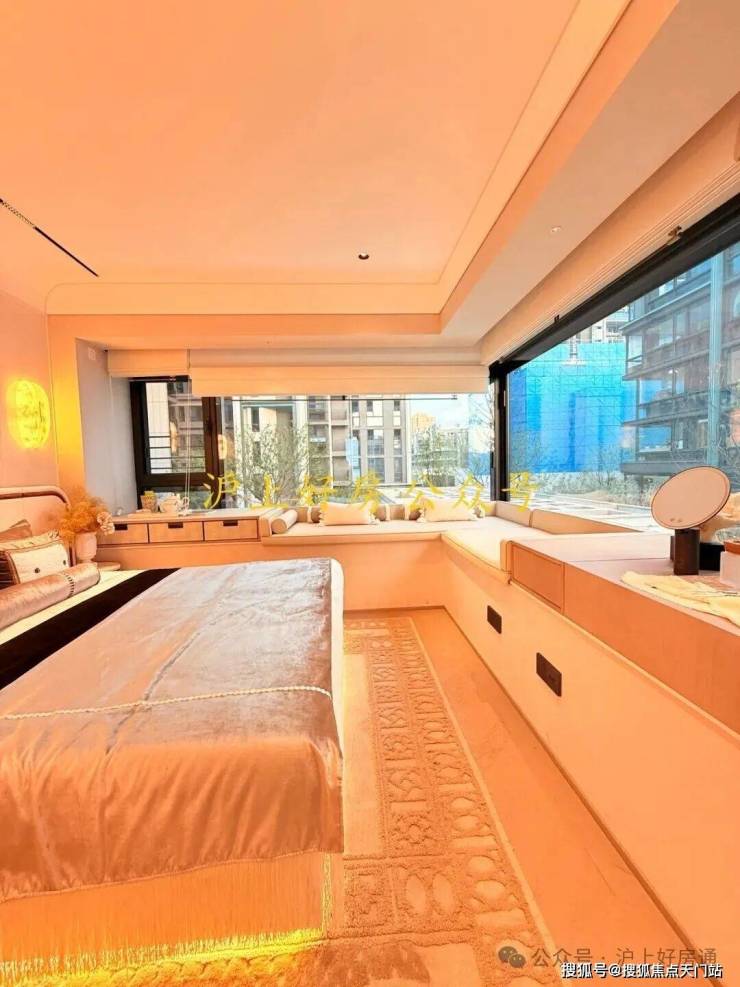 主卧拥有270度环幕飘窗,视野和采光优越,配备了高奢卫生间,空间感、尊崇感拉到顶格。