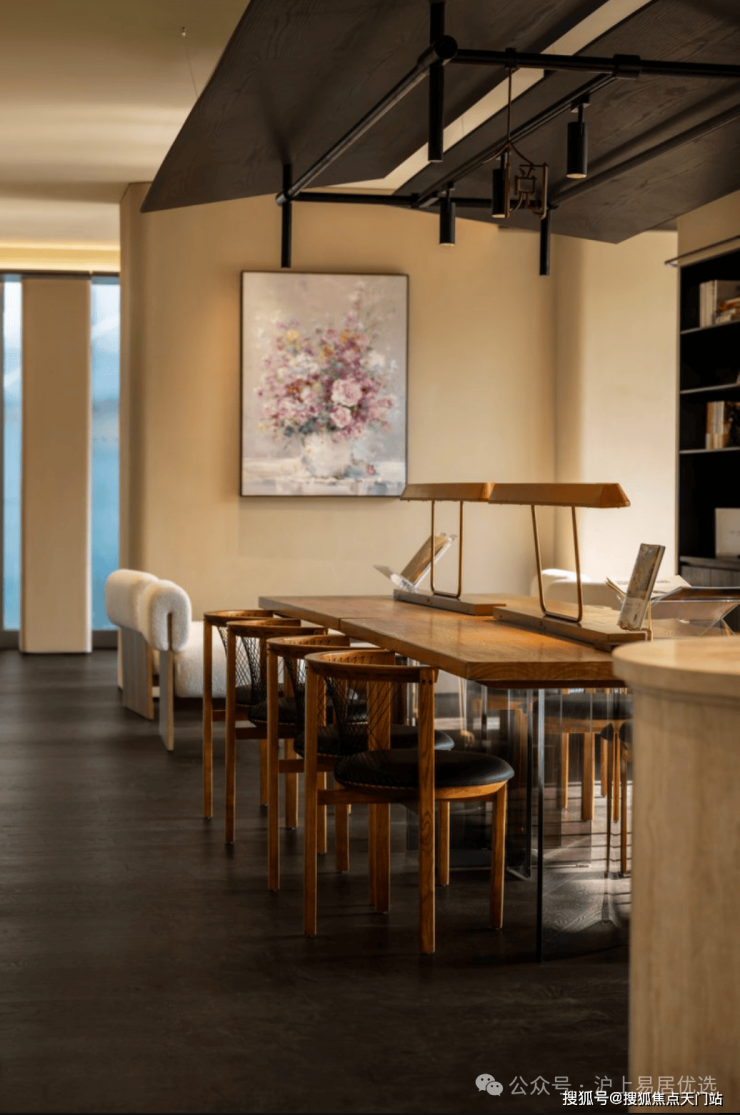 四季隐秀·東玠,于尺度、比例、材质和光影之间,保持一种内敛而有力的节奏感。白金画框、漂浮飞檐、木石隔栅以及风情序厅等,以现代洗练的设计,打破古典主义的强对称轴线,轻盈而丰富。