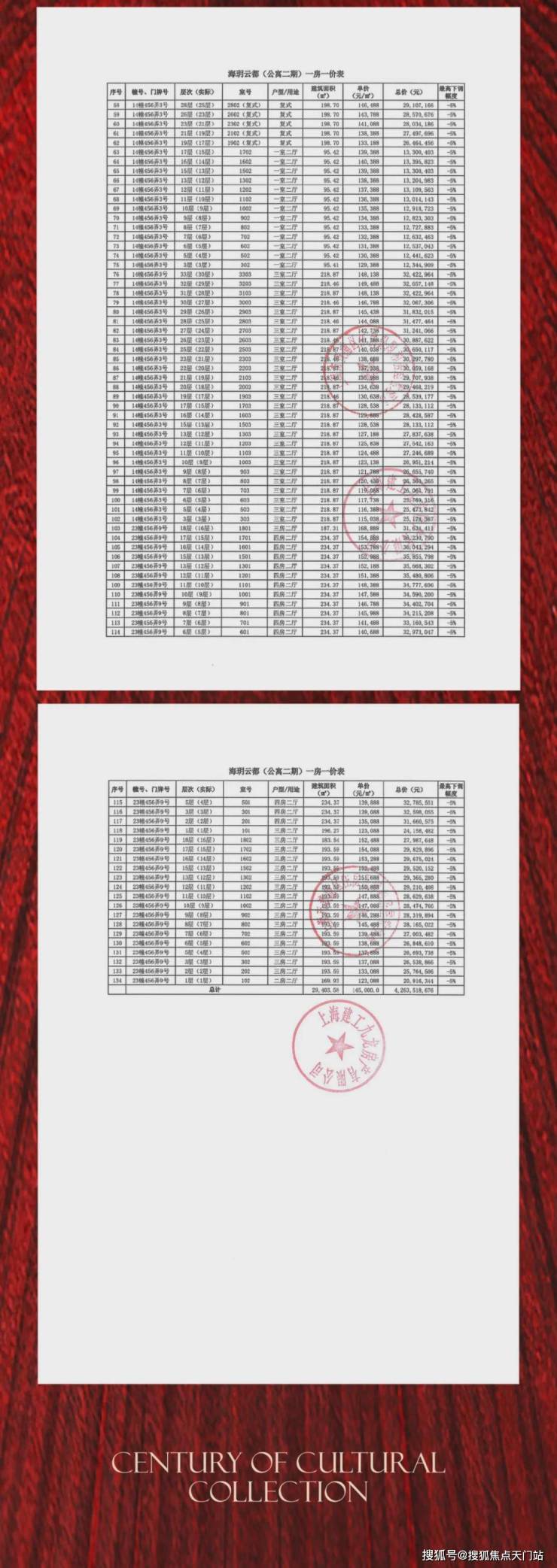 项目一房一价表▼