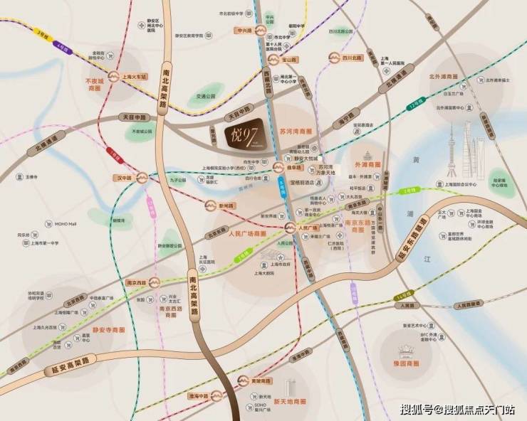 如果不拘泥于步行,视角放大到3公里半径,范围内江涵盖陆家嘴、人民广场、静安寺、南京西路、南京东路、外滩、新天地等城市CBD,上海几乎所有的高能级城市资源都在悦97业主的生活场域之内,这一点也是徐汇滨江难以比拟的!