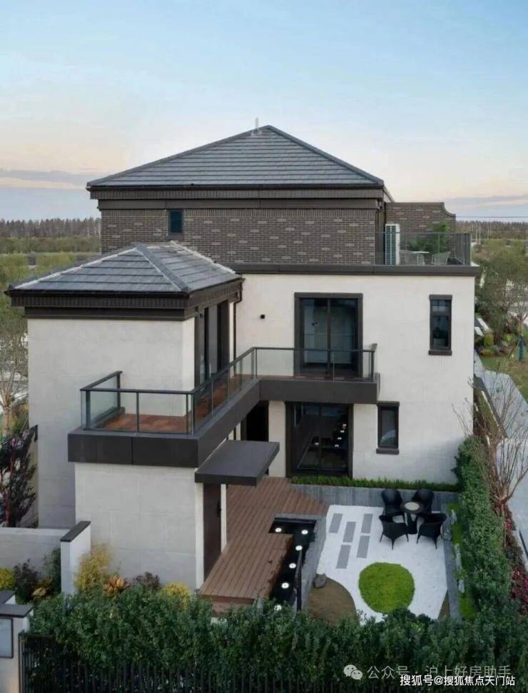 【上实·和风院】建筑外观是 新中式格调,以黑色面瓦为黛顶,整体线条简洁明快。
