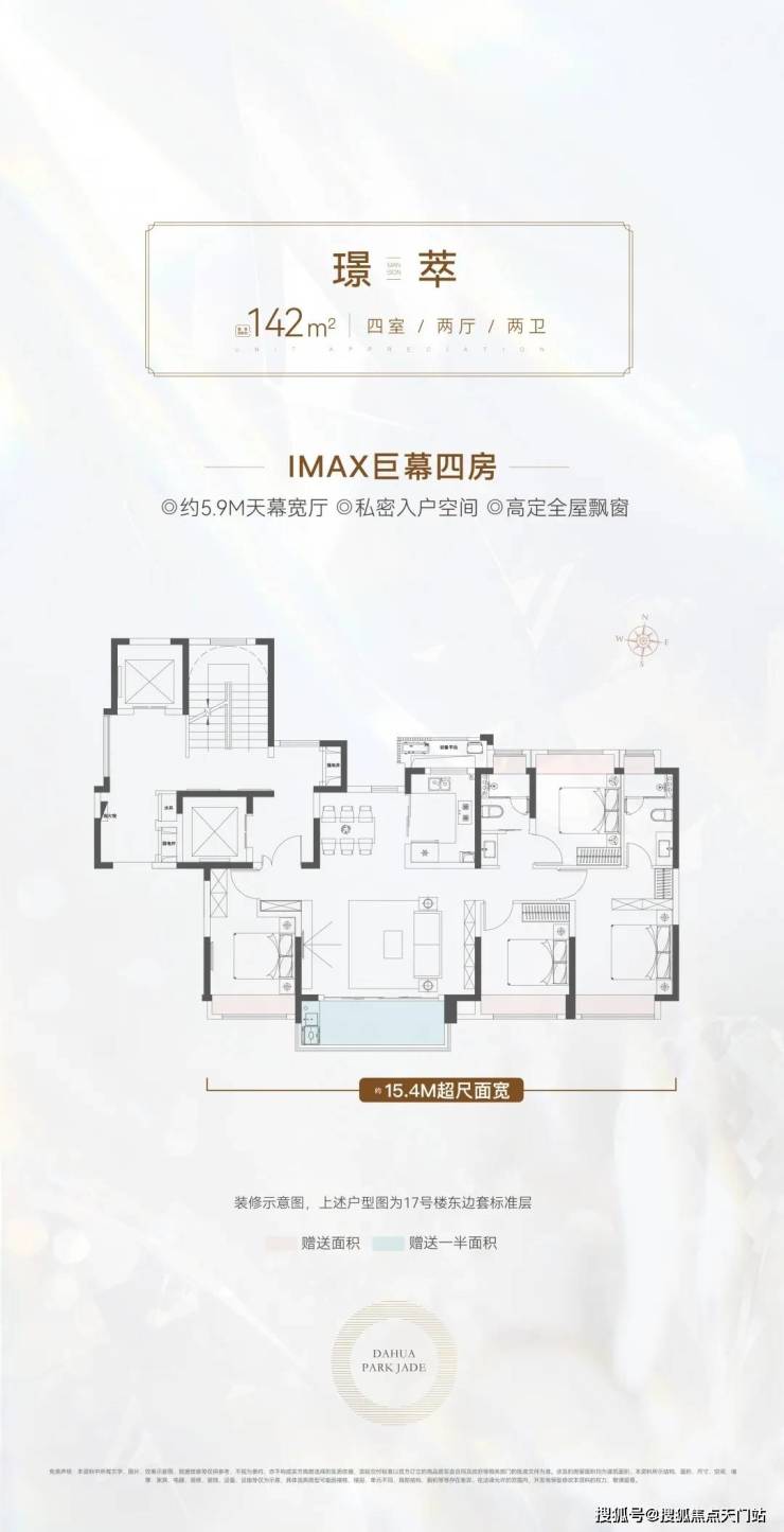 建面约142㎡四房是纯正的一梯一户设计,电梯厅标配开窗带来自然采光。