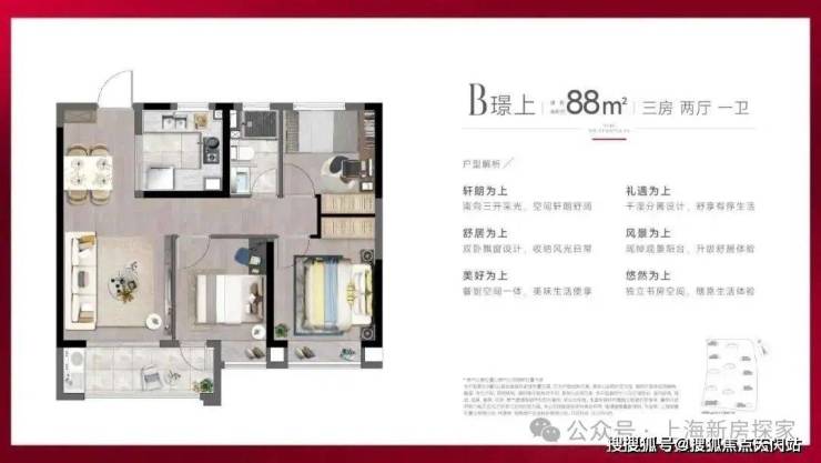 产品方面,项目 主推建面约88-98㎡精装3房, 功能性和品质感兼具。