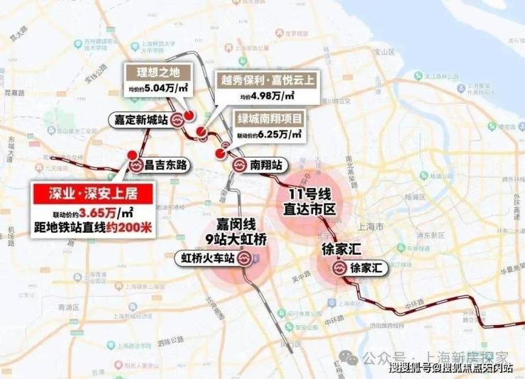 价格优势:项目 联动价3.65万/㎡,向前2站的嘉定新城项目价格在5.04万/㎡,仅是多坐几站轨交,价格就大幅度回落,价值不言而喻。