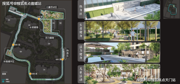 精心设计的环绕社区的 400m跑道系统串联热身区、定制主题儿童活动区、老年健身区、活力健身区和休憩缓冲区五大运动活力系统,家人在社区内锻炼身体的祥和画面呼之欲出。