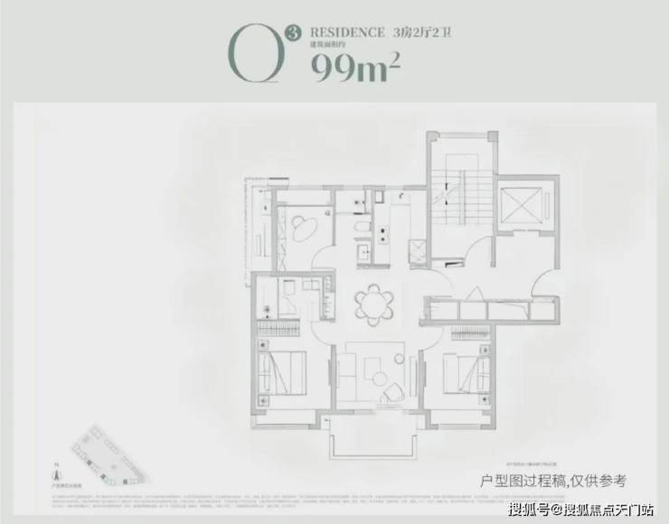 建面约99m²3房2厅2卫: