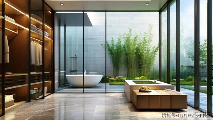 主卧套房私享系统:独立衣帽间、270°转角窗卫浴空间,晨昏光影成为私属艺术展;