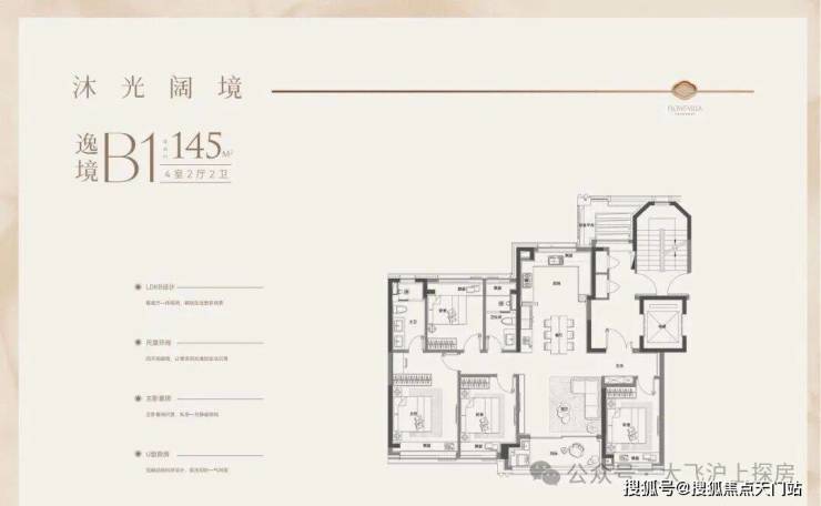户型特点:4开间朝南,LDK一体化设计,南北通透。客厅面宽达4.3米,外接4.8米长阳台,采光通风俱佳。主卧带270°转角飘窗,主卫也有飘窗赠送。全屋飘窗设计,独立电梯厅,私密性与尊享感强。