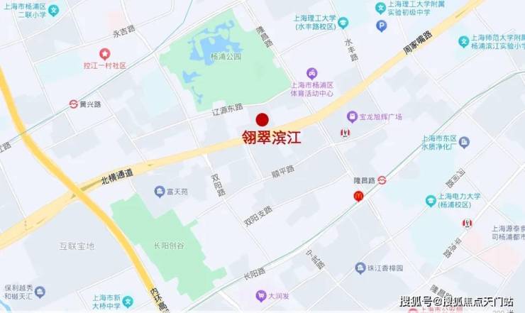 项目位于杨浦内中环, 距离内环直线约1公里,距离8号线延吉中路站直线约1公里,距离12号线隆昌路站直线约700米