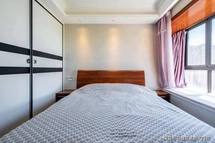卧室暖光轻柔,紫帘半掩,窗外光影流转。躺床上,看会儿墙上电视,疲惫在静谧氛围里消散,安心感十足。