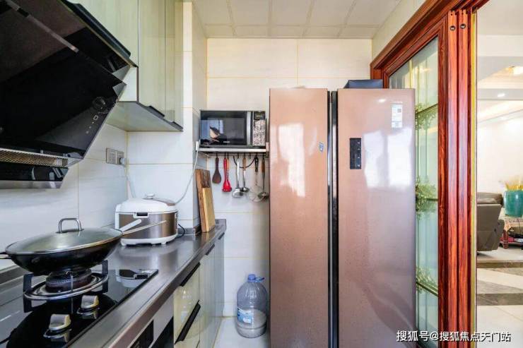 厨房浅绿橱柜清新,采光佳。锅铲碰撞,食材在锅中翻滚,油烟被强劲烟机吸走,烹饪时满是创造美味的愉悦。