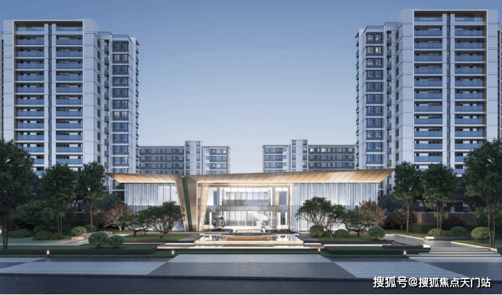 简约几何线条立面,灵动飘逸的飞檐塔冠,金属铝板、一体板等不同材质运用,令建筑极具动感韵律;大面积玻璃、优越窗墙比,带来明快澄净视觉效果,整体建筑群落呈现流云光幕的美感。