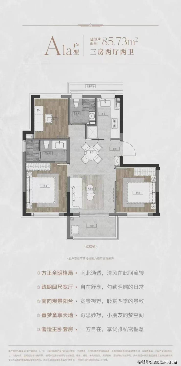 区别于市面上80多平2房或3房1卫,该户型做出了3房2卫的格局,功能性拉满,满足三代同堂/二胎家庭共居。