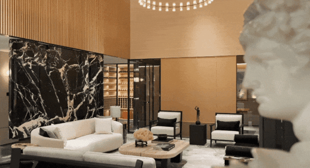 材质新生:豪宅同款奢砖、大面积奢石运用,定制家族排场;