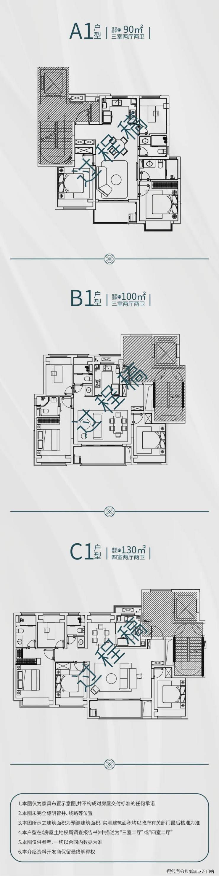 项目目前在售建面约90-136㎡3-4房,最新户型图如下: