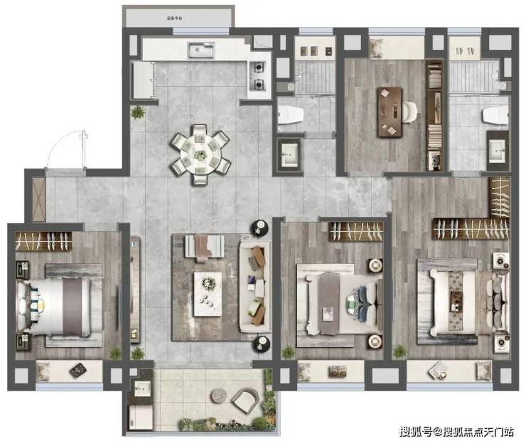 社区方面,项目打造全龄段,全维度活力健康住区,以“两轴一心、一环五区”园林景观规制约7500㎡中央景观,高配约600米环形健身步道。
