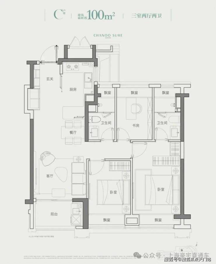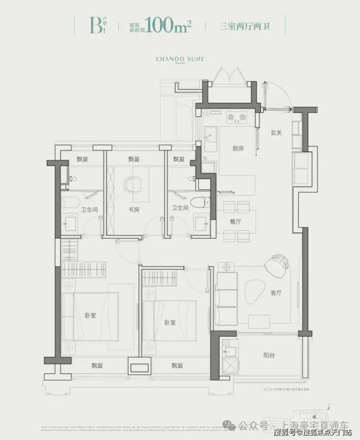 项目高层产品均为100㎡左右3房户型,一梯6户: