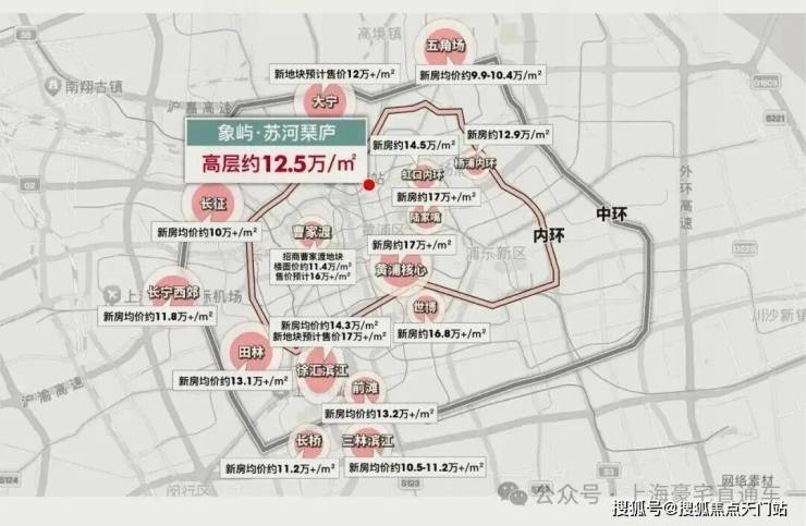 上海象屿·苏河琹庐位于内环静安区,直线约300米可达中兴公园和交通公园,距静安大悦城、万象天地、宝格丽酒店、苏河湾世界级滨水商务区等配套直线约1KM,距人民广场直线约1.5KM,周边聚集了超21家跨国公司地区总部,约3KM国际生活圈,涵盖陆家嘴、人民广场、静安寺、南京路、外滩、新天地等繁华CBD都市生活圈。