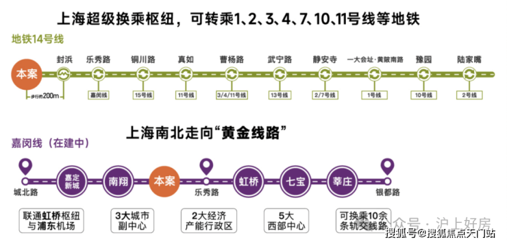 双轨交汇(地铁14号线&嘉闵线在建中)·约3站虹桥枢纽(嘉闵线在建中)·5站普陀(地铁14号线)·一脉静安