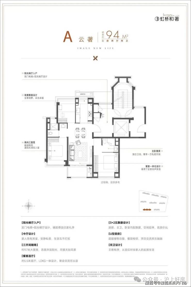 LDKB客餐厨阳台一体化设计,整个南向三开间面宽拉伸到约9.7米,升维更轩阔的公区会客厅。飞机户型的空间排布,空间充裕但不浪费,将每一平米更大化利用。