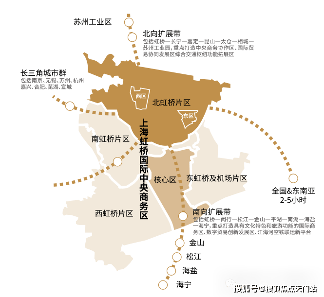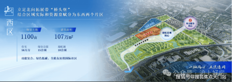上虹桥依托东西两个片区(西居东产,共计约167公顷),遵循“以人为本、产城融合、多元包容、活力共享”的理念,整体打造创新经济集聚区、中央商务配套区和高品质国际化社区。