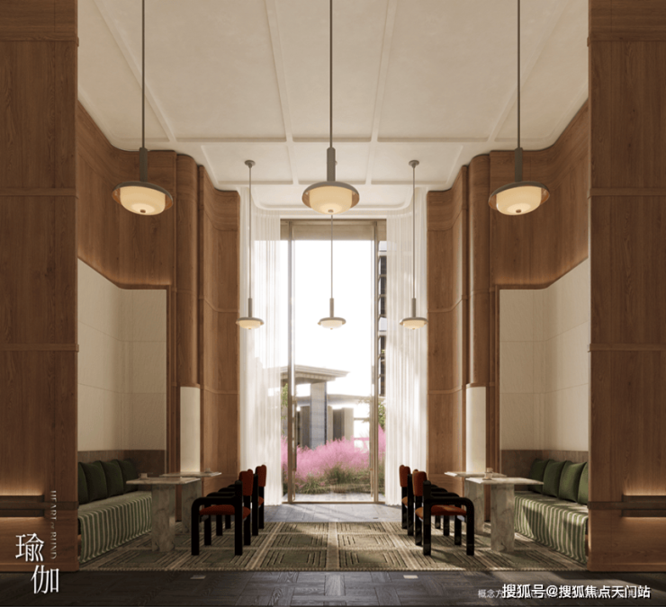 3500㎡下沉水苑“回归之境”,汇聚会客、泳池、茶室等多功能空间;百米绿茵“探索之境”,融入派对庭院、文学花园与游戏甲板;
