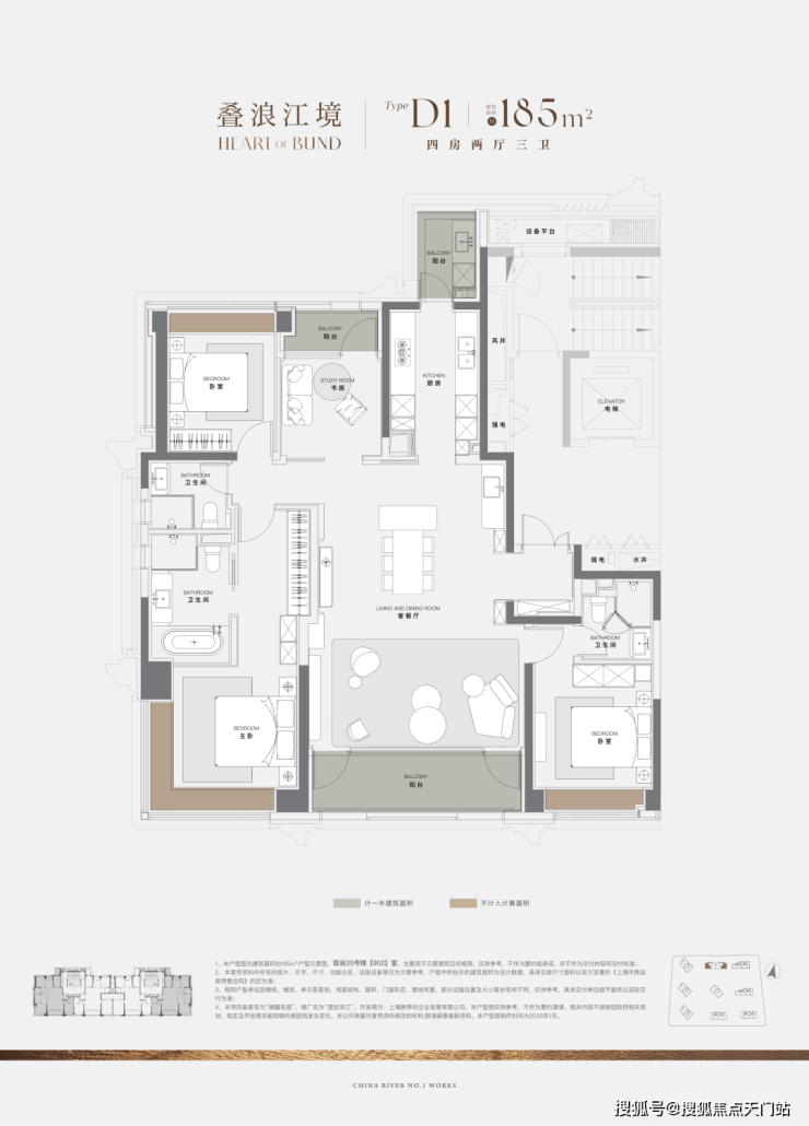 更难得的是,项目185㎡户型堪称上海滨江之上的园境栖居典范。