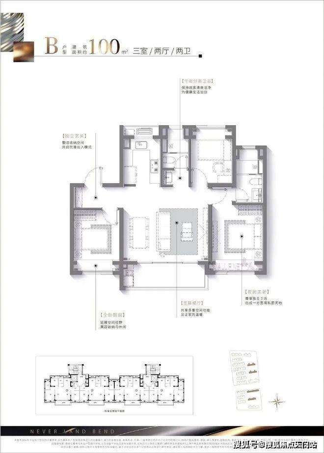 招商云澜湾售楼处电话: 400-1182-105【欢迎预约】项目建面约100㎡3房2卫仍然是优秀的飞机户型,但实现该面积段少见的大面宽 横厅设计!