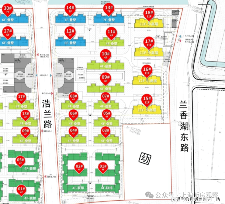 03-04地块:东至兰香湖东路,南至兰香湖北路,西至浩兰路,北至东川路, 土地用途普通商品房,容积率1.01;由4幢11F高层住宅、14幢4-7F多层住宅以及若干社区配套用房组成,共计规划约342套可售住宅;
