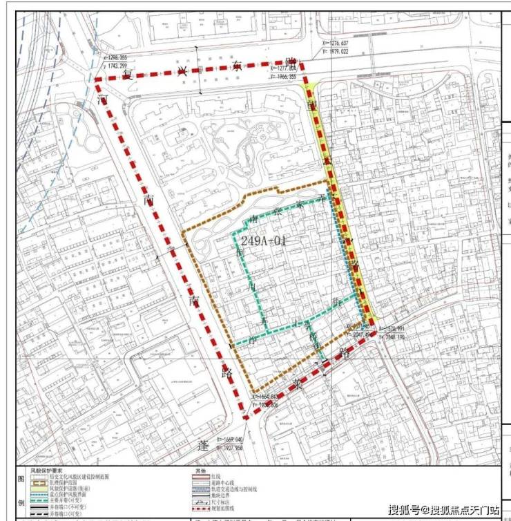 沿蓬莱路设置地块内部绿化,总面积不小于1000平方米,其边界为可变控制,宽度约为10米。