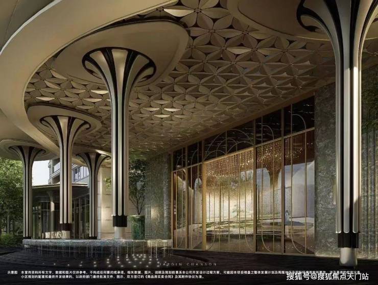 门头顶部的500多片镂空透光铝板雕花花瓣,皆由项目 LOGO精琢演化而来。当阳光倾泻,光与影在镂空间起舞,在地面织就一幅不断变幻的 自然画作。这是 3000万重金雕琢的细节,更是对品质的无声承诺。
