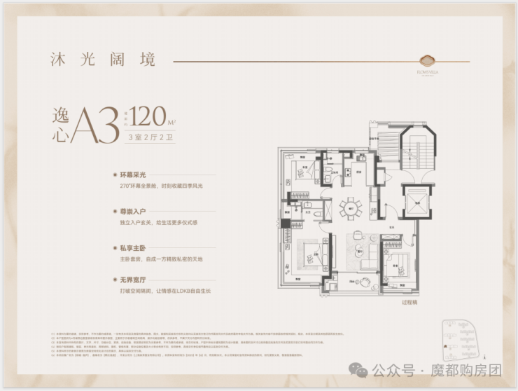 2、建面约120平大3房楼王席位,此面积段最后一批类一梯一户的房源,错过再无;
